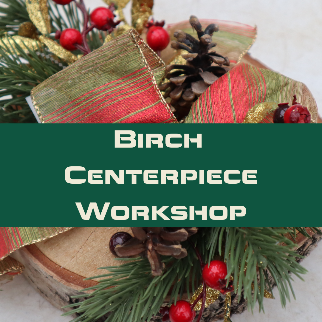 Join us for a fun and creative workshop where you can design your beautiful birch log or disc decor piece. Perfect for your front steps, under the tree, or on the hearth, these natural centerpieces will add a special touch to your celebrations.