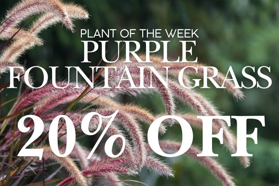 Our Plant of the Week is Purple Fountain Grass! Get 20% off August 18-24.